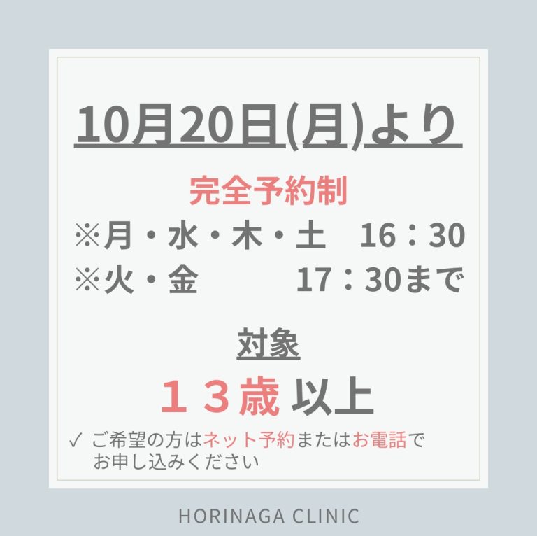 予防接種の予約・変更とホルモン剤の薬処方が予約できます