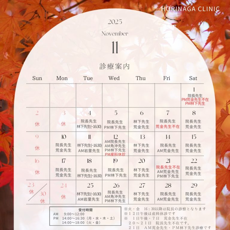 希望の医師がいる方は、受診前に当院ホームページまたはインスタグラム、お電話でご確認の上ご来院ください